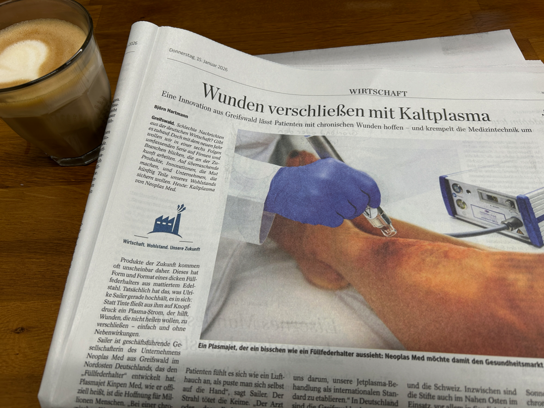 This is how several German media outlets are currently summarizing the significance of our argon jet plasma therapy. Under the headline “Closing wounds with cold plasma,” the Berliner Morgenpost, the Hamburger Abendblatt, and the Westdeutsche Allgemeine Zeitung, among others, reported in detail on our groundbreaking innovation.
